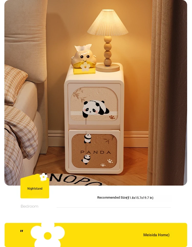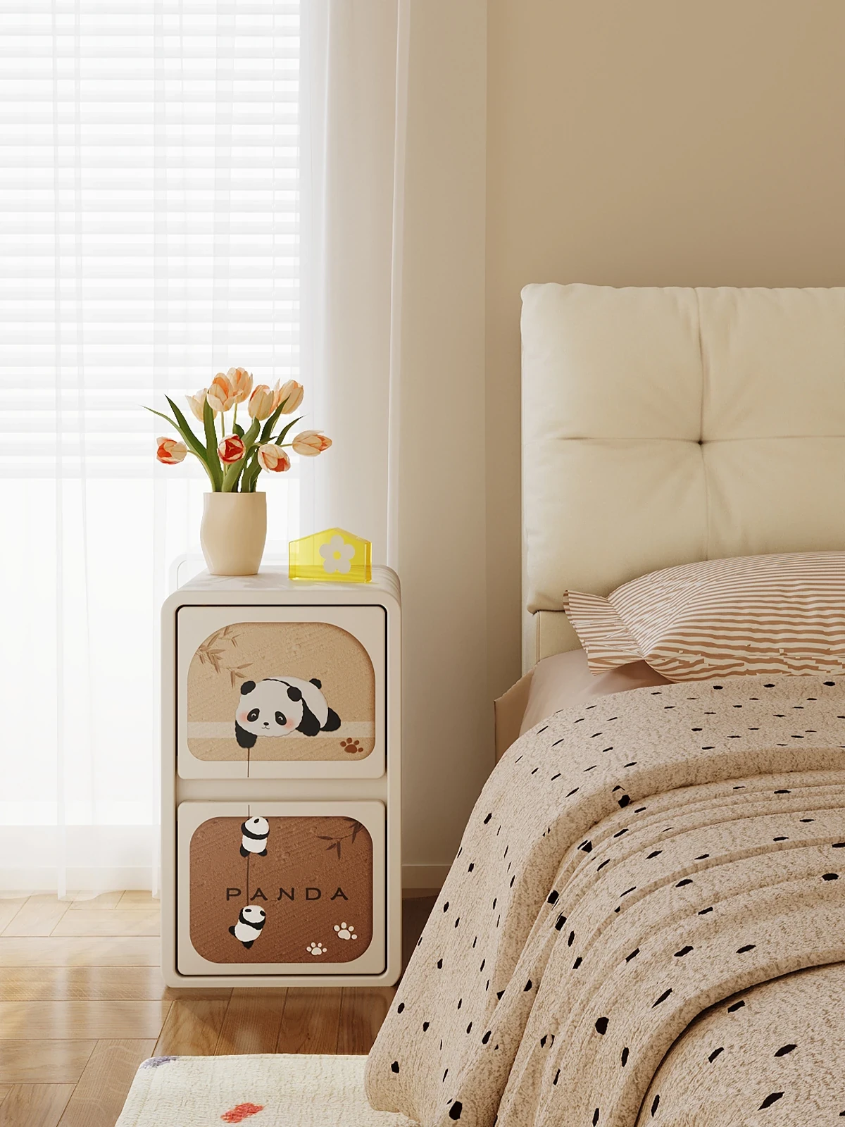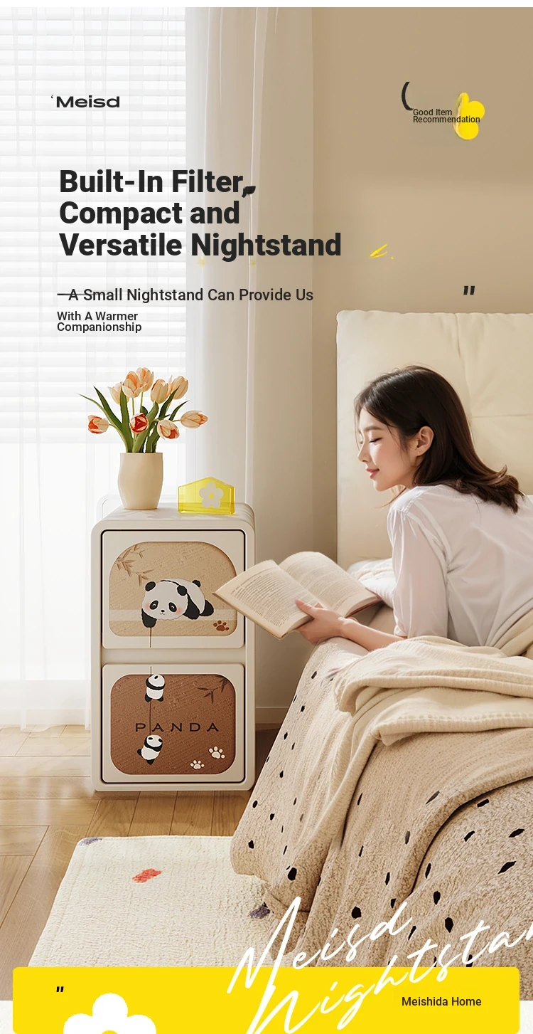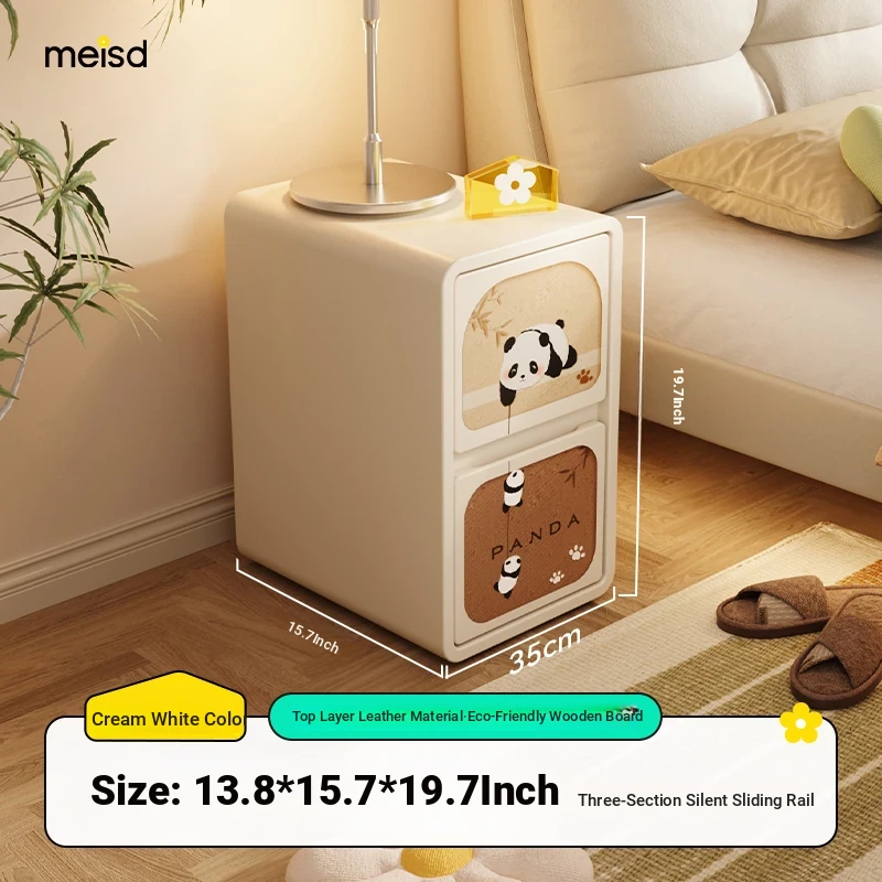 Meishida Creamy Narrow Sofa Side Cabinet - Stylish Bedside Table, Coffee Table, Snack Cabinet for Living Room - Adorable Panda Design