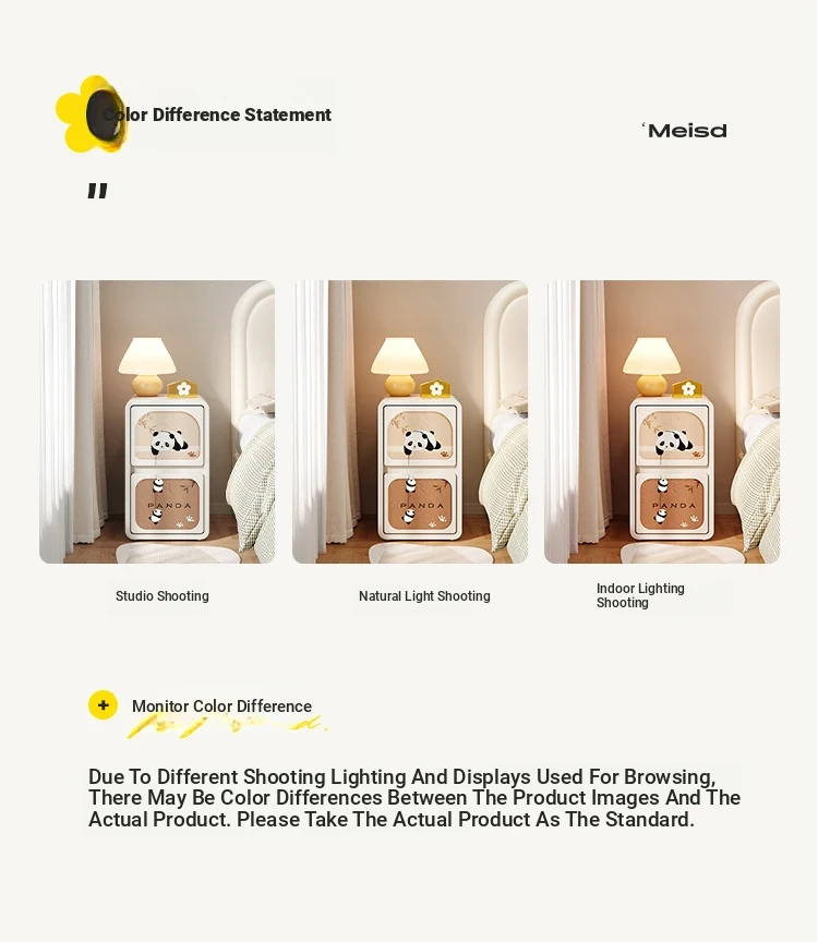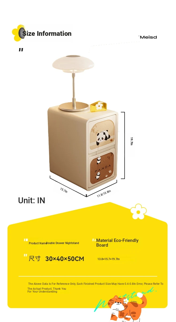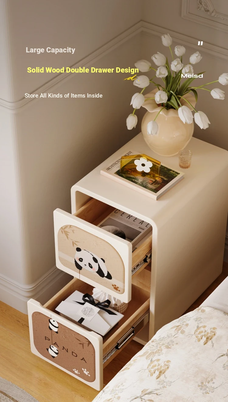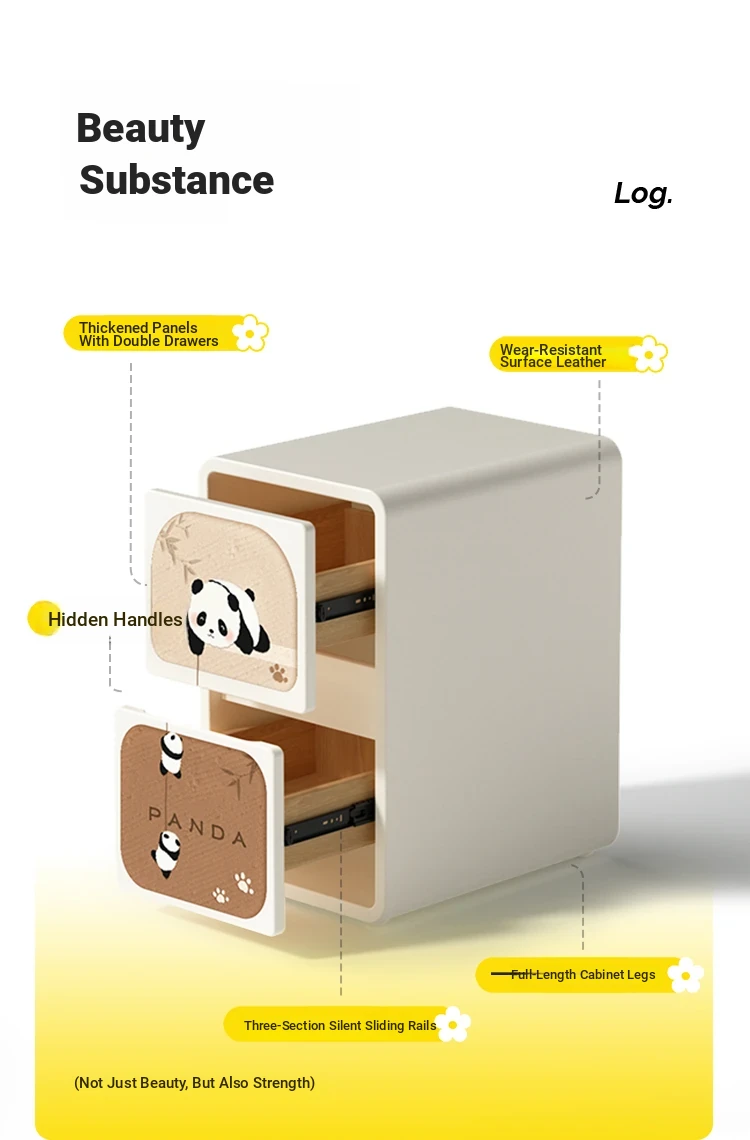 Meishida Creamy Narrow Sofa Side Cabinet - Stylish Bedside Table, Coffee Table, Snack Cabinet for Living Room - Adorable Panda Design