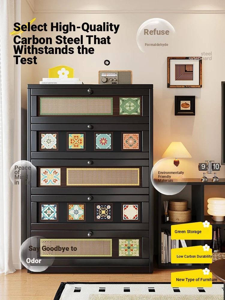 Mid-Century Modern Iron Storage Cabinet - Versatile Dresser for Living Room, Bedroom, or Entryway - Stylish and Functional Chest of Drawers for Books, Blankets, and More
