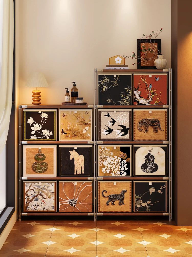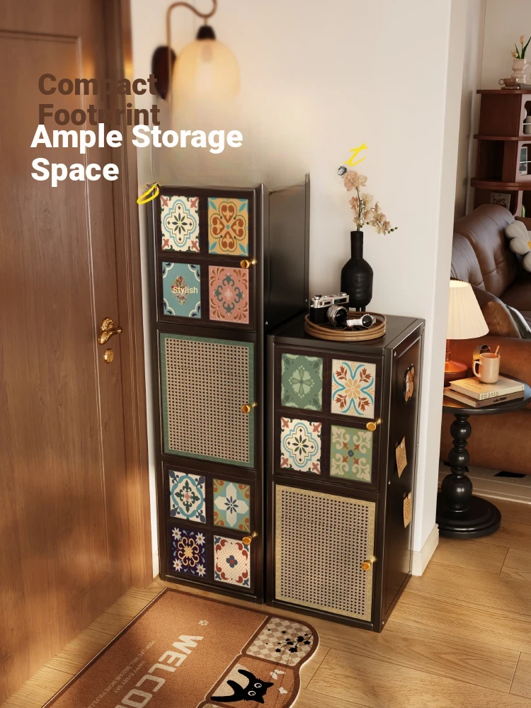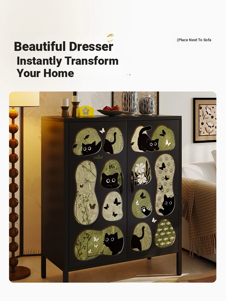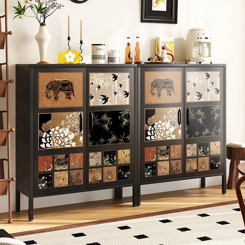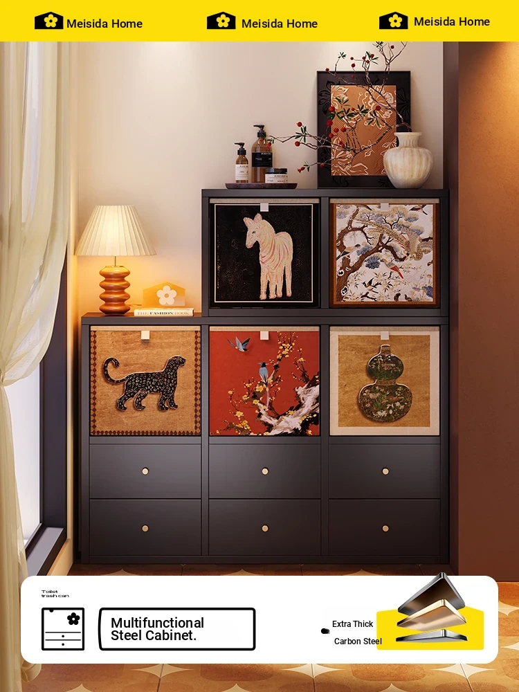 Meishida Vintage Carbon Steel Wall-Mounted Sideboard Storage Cabinet - Elegant Stainless Steel and Iron Fusion for Your Living Room, Perfect for Organizing and Enhancing Your Space!