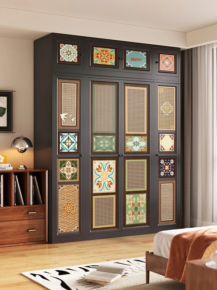 Meisida Rattan Woven Vintage Style Wardrobe - Carbon Steel Freestanding Wall-Mounted Closet with Doors for Home Bedroom Storage Solutions