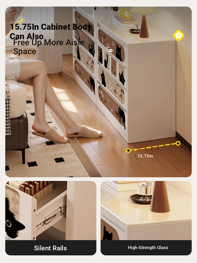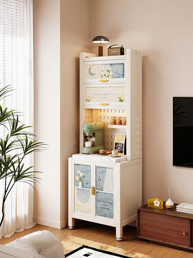 Meisida Cream Wind Stainless Steel Ultra-Thin Narrow Storage Cabinet - Stylish Wall-Mounted High Cabinet for Small Living Rooms and Home Use