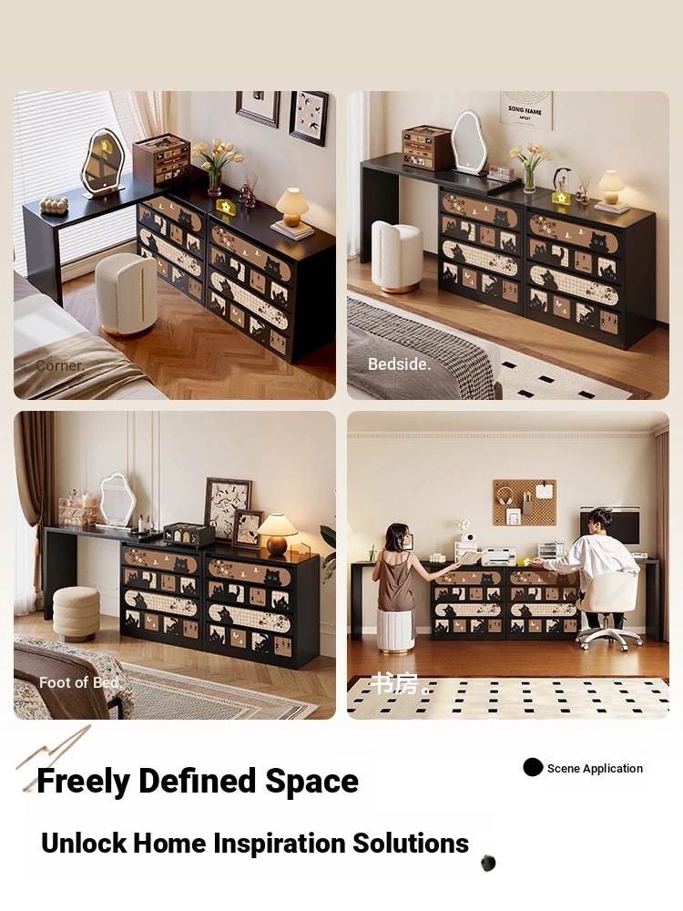 Meisida Modern Minimalist Carbon Steel Makeup Vanity with Corner Design and Integrated Dresser - 2025 New Style for Your Bedroom