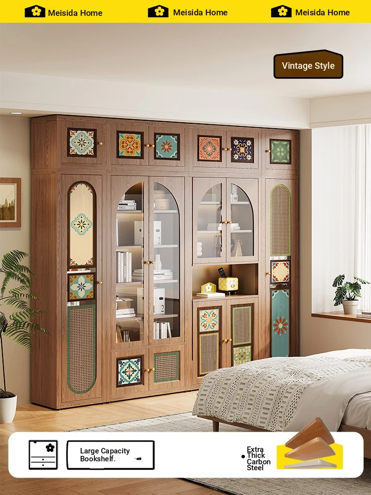 Meisida Vintage-Style Dustproof Bookcase - Carbon Steel Bookshelf with Integrated Wall Design, Glass Door Storage Cabinet for Home Office Organization