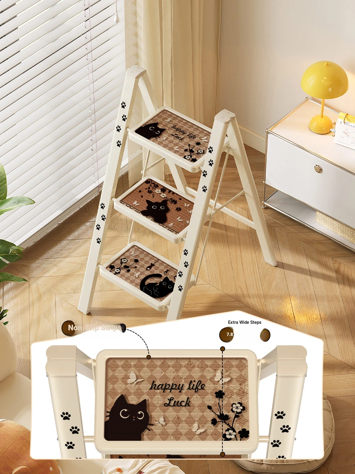Meisida Folding Multi-Functional A-Frame Ladder - Heavy-Duty Indoor Step Ladder with Extendable Design for Home Use