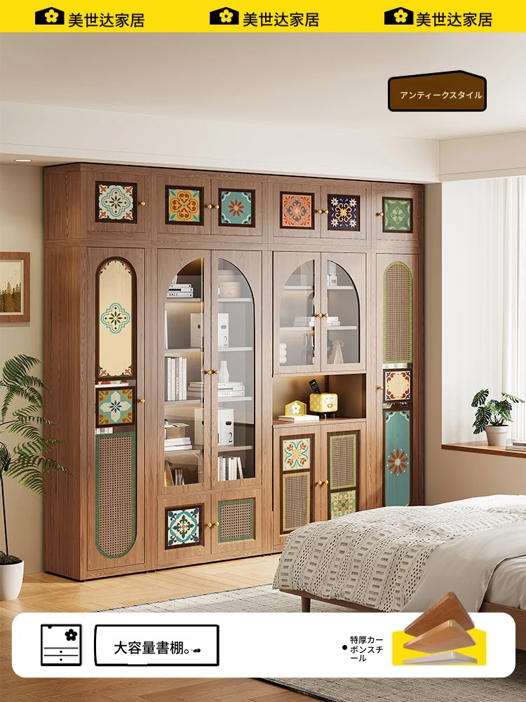 美世达中式風格の無垢材書棚収納キャビネット一体型本棚、床置きタイプのディスプレイラック、カラレックのコンビネーションボックスキャビネットで、置くだけでお部屋が華やかに!