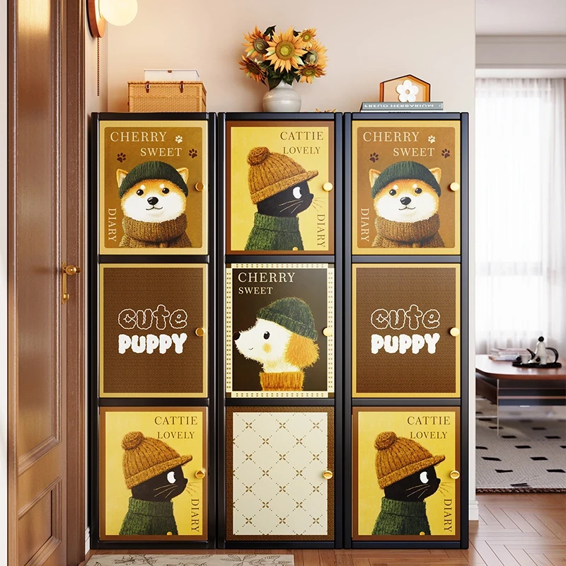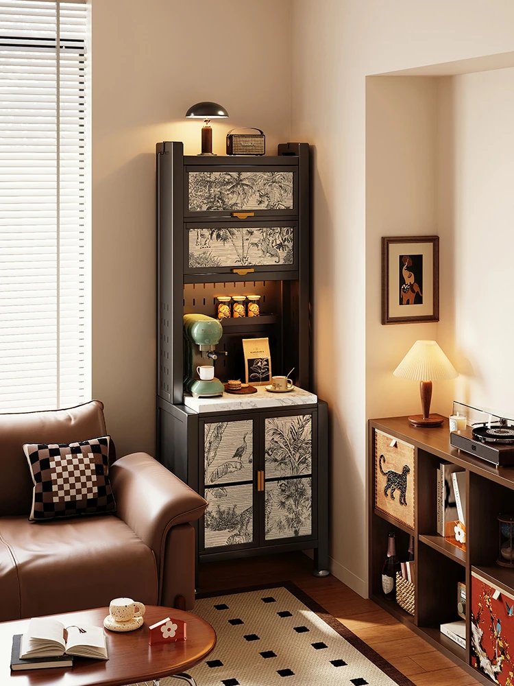 美世达のアンティーク風アイron製皮革ダイニングサイドボード、壁掛け一体型収納キャビネット、スリムでスタイリッシュな自由組み合わせ可能なダイニングキッチン収納。おしゃれで機能的な空間を演出!