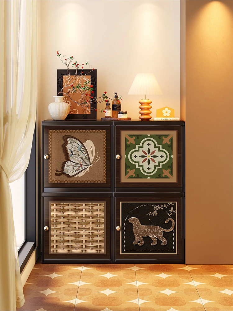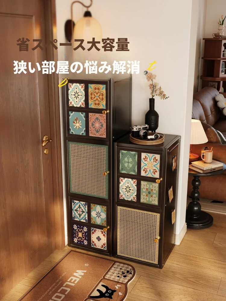 美世达の藤編み中華風衣柜 - 家庭用の寝室に最適!カーボンスチール製の頑丈なフロアスタンドで、壁に寄せて使える一体型デザイン。扉付きで収納力抜群、スタイリッシュな収納ソリューションをお届けします!