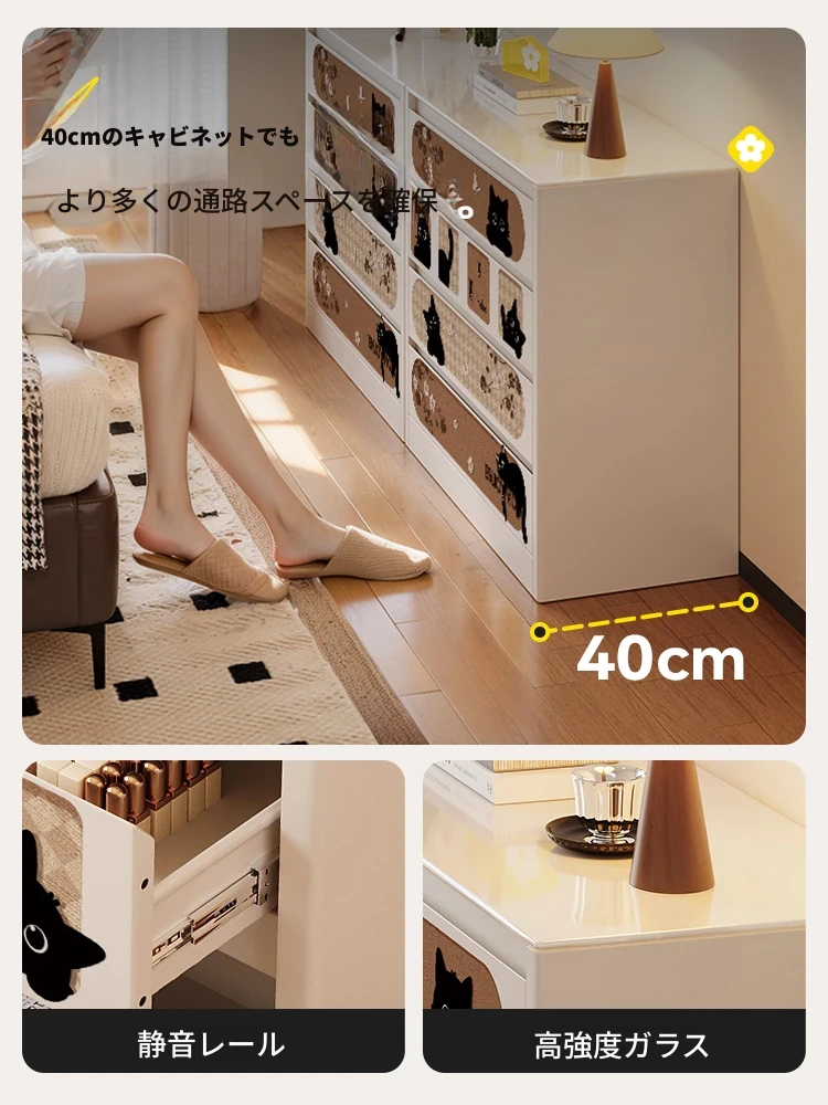 美世达クリーム風ステンレス製スリムウォールキャビネット - 小型リビングルームに最適な収納力抜群のハイキャビネット!おしゃれで機能的なデザインで、空間を有効活用。