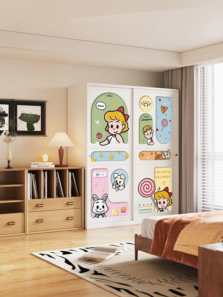 ミセダのクリーム風コートクローゼット - ドーパミン効果で無ホルムアルデヒド、子供部屋に最適なカーボンスチール製スライドドア付きコンパクト収納!安心・安全な空間を提供します。