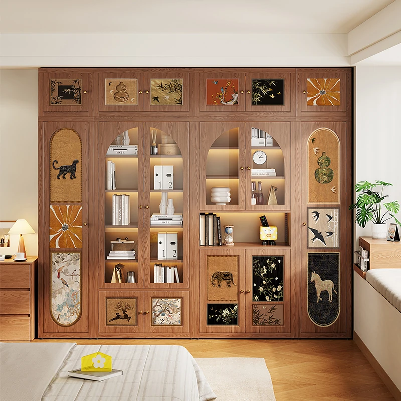 美世达中華風木目書棚 - カーボンスチール製、ホコリ防止一体型、壁掛け対応のアイアンアート収納ラックです。リビングや書斎にぴったりのスタイリッシュなデザインで、あなたの空間を美しく演出します!