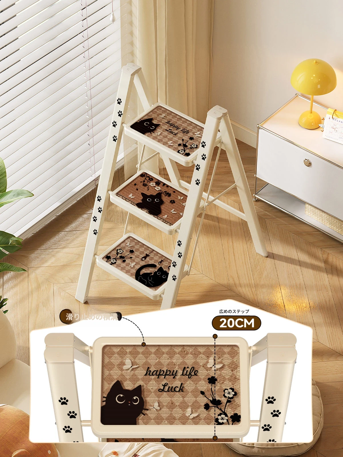 美世达の家庭用折りたたみ二役多機能ハシゴ - 厚手伸縮式踏み台、室内外兼用で安全・便利!収納も簡単で、毎日の作業をサポートします。