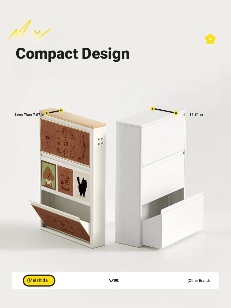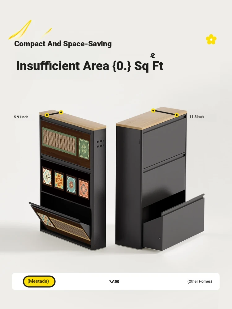 Meishida Narrow Entryway Shoe Cabinet - Vintage-Style Ultra-Thin Steel Flip-Top Storage Organizer for Small Spaces, Perfect for Hallways and Wall-Mounted Use