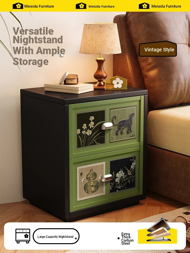 Meisida Vintage-Style Nightstand - Elegant Metal Bedside Cabinet for Home Bedrooms, Luxury Feel with Steel Iron Craft, Formaldehyde-Free Design