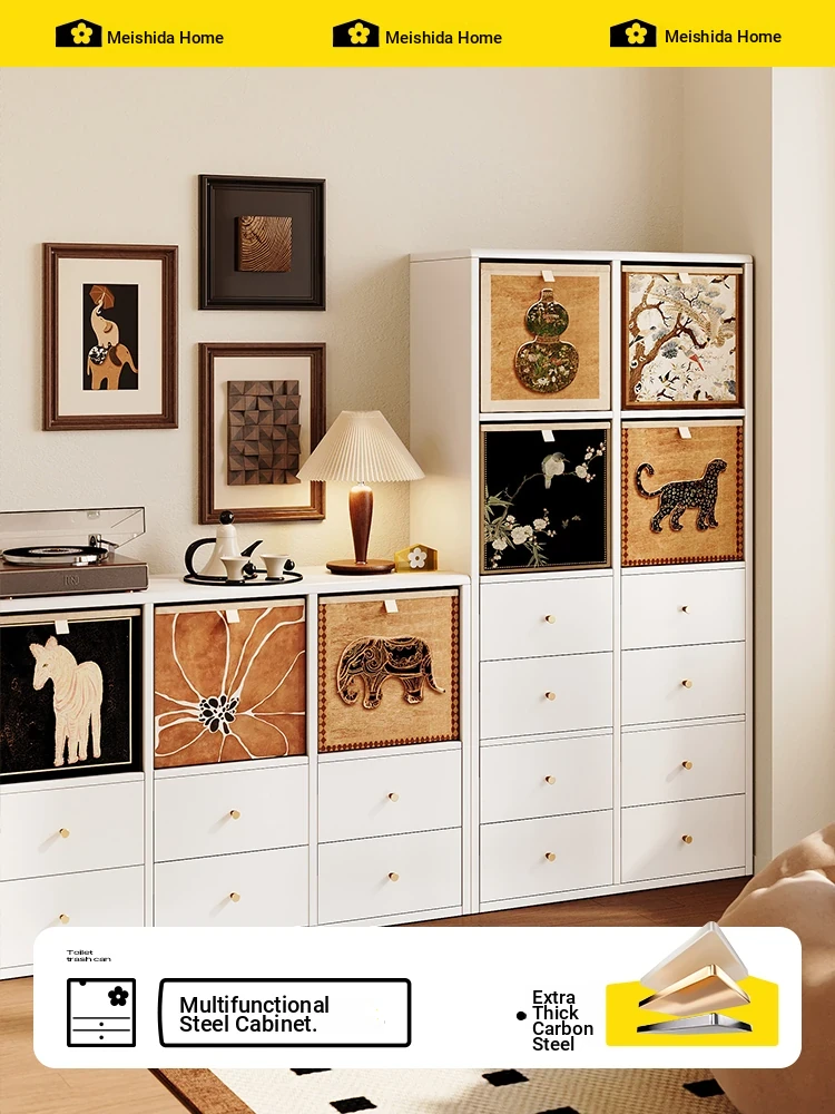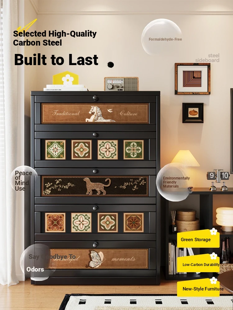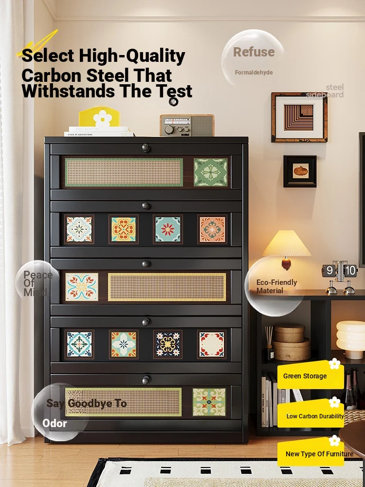 Stylish Metal Five-Drawer Storage Cabinet - Ideal for Living Room, Wall-Mounted Design, Durable Steel Constructed, Perfect for Organizing and Storing Essentials
