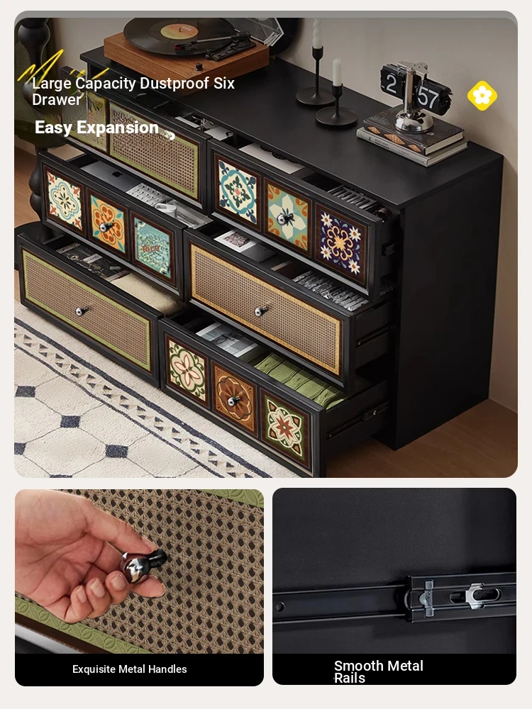 Mersida Vintage Steel Five-Drawer Dresser - Versatile Storage Cabinet for Bedroom, Living Room, and Entryway - Stylish Wall-Mounted Storage Solution with Drawer for Bed End.