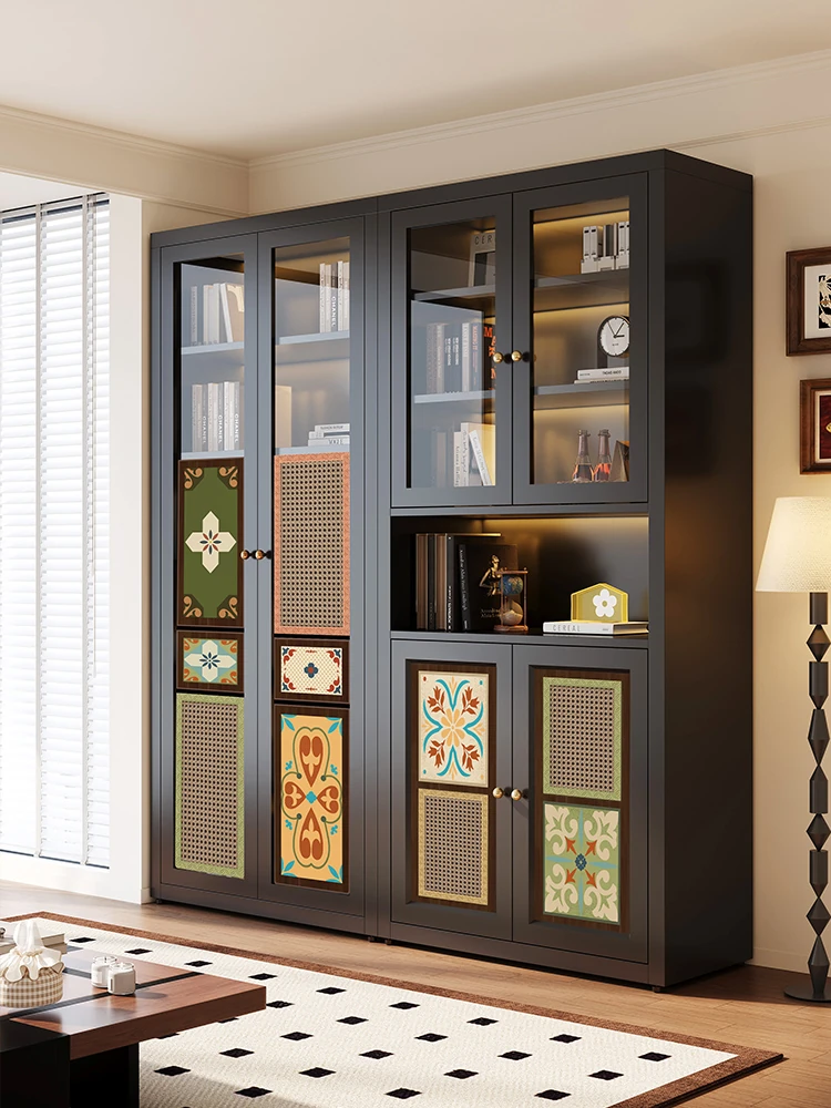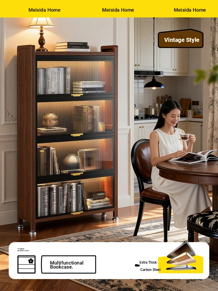 Meisida Vintage Style Bookshelf - Floor Standing Glass Storage Cabinet for Living Room & Home Office, Made of Durable Carbon Steel, Space-Saving Wall-Mounted Design