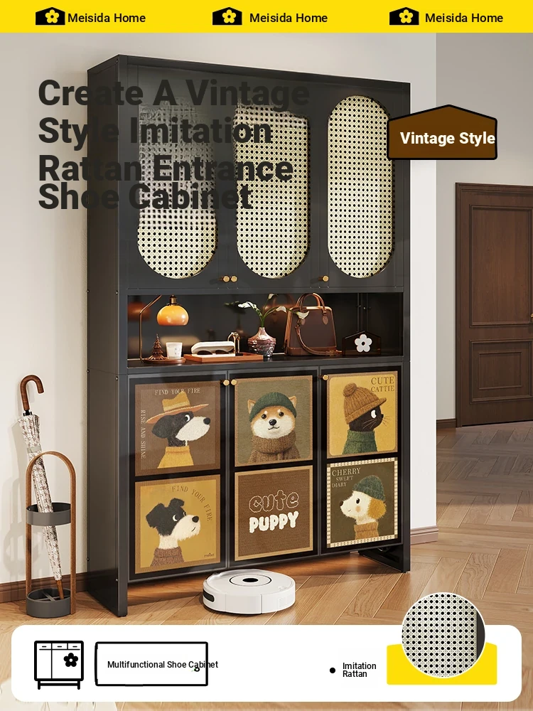 Meisida Vintage-Style Entryway Cabinet - Carbon Steel Shoe Storage Unit with Glass Doors, Perfect for Hallways and Entryways, Combining Art and Functionality