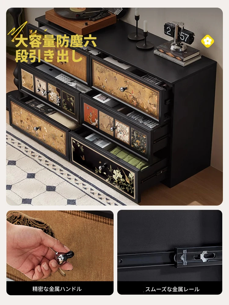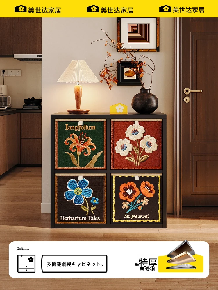 美世达の中華風玄関キャビネット - カーボンスチール製、ガラス扉付きのアート一体型シューズキャビネット。玄関を華やかに彩り、収納力抜群でおしゃれな空間を演出します!