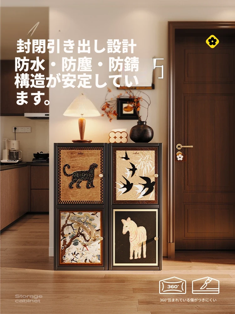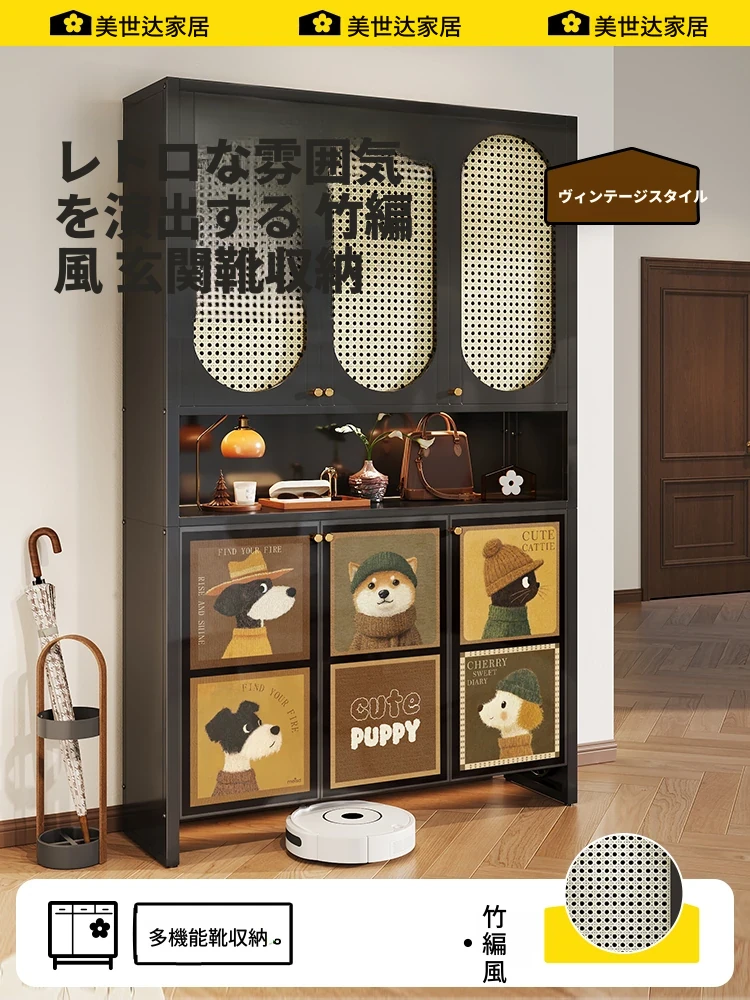 美世达バンブー編み玄関キャビネット - 中古風の入門正面収納、リビングのパーティションとしても使える高級感溢れる一体型デザイン!おしゃれで機能的な空間を演出します。