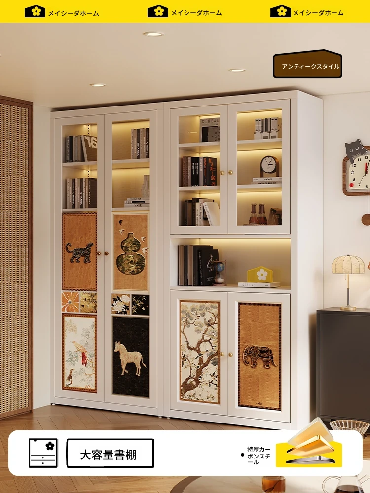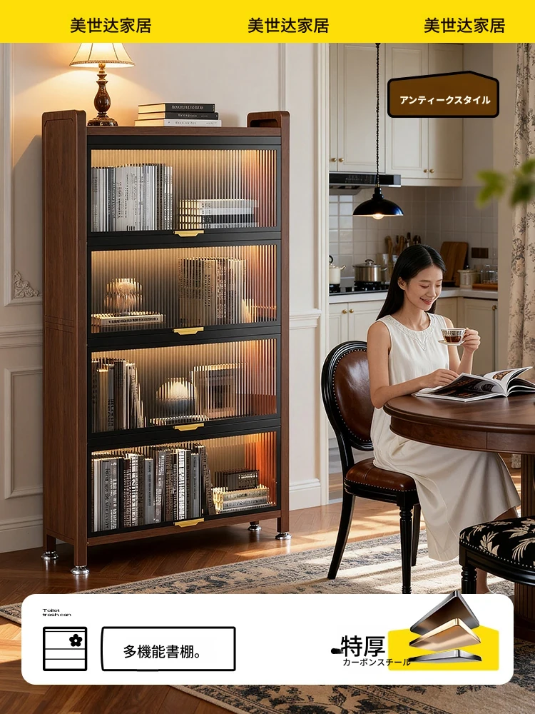 美世达のアンティーク風書棚 - ガラス収納付き、リビングや書斎に最適なスタンド式カーボンスチール製、壁掛け対応の本棚。おしゃれで機能的な収納スペースを実現!