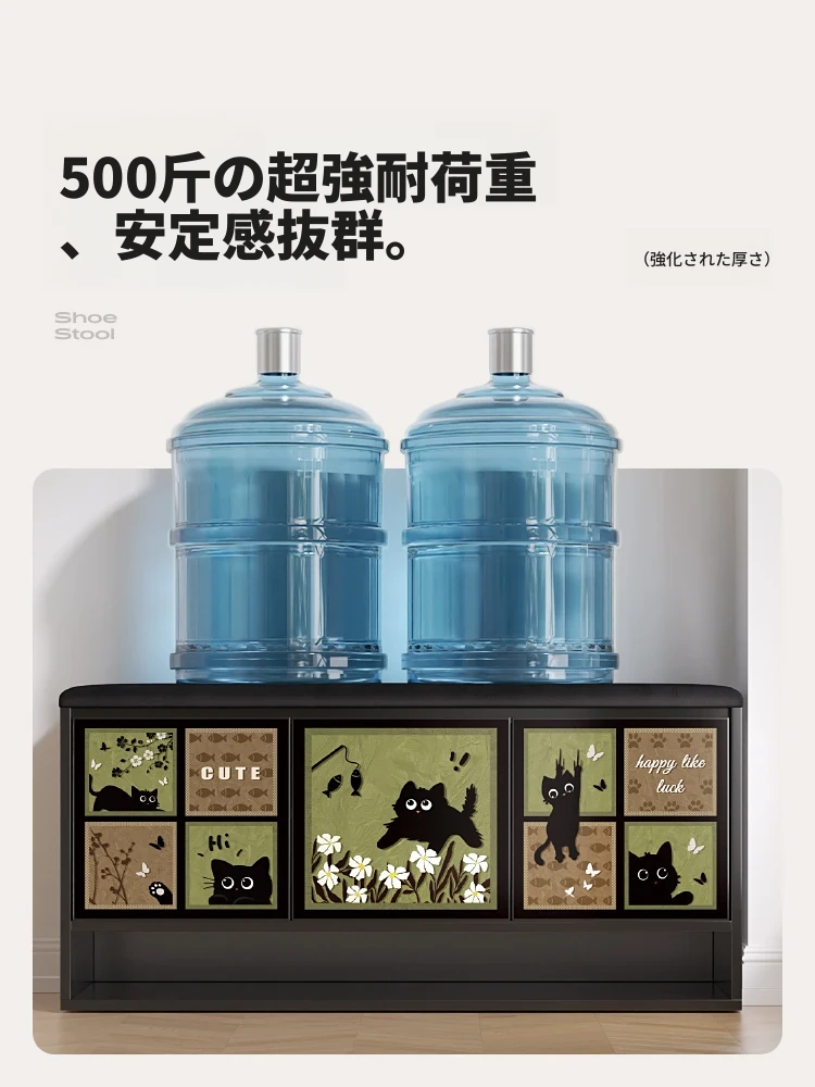 美世達の木製靴ベンチ - エントランスにぴったりなレトロ風シューズキャビネット、軽やかなラグジュアリーで収納も充実!家族皆が使いやすいデザイン。