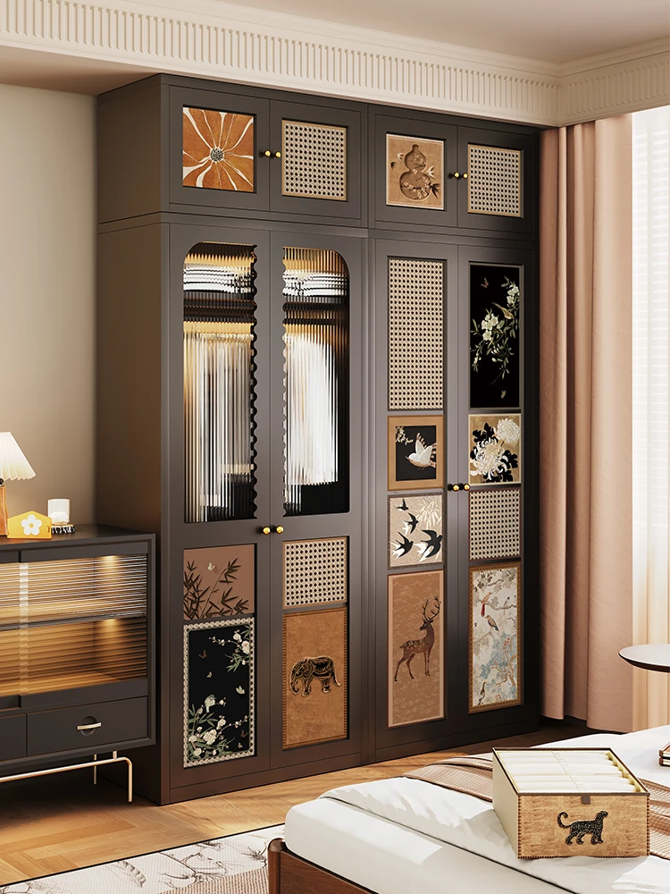 Vintage-Style Aluminum Alloy and Iron Wardrobe with Leather Storage - Retro Carbon Steel Closet for Home Bedrooms, Perfect for Chic and Stylish Interiors