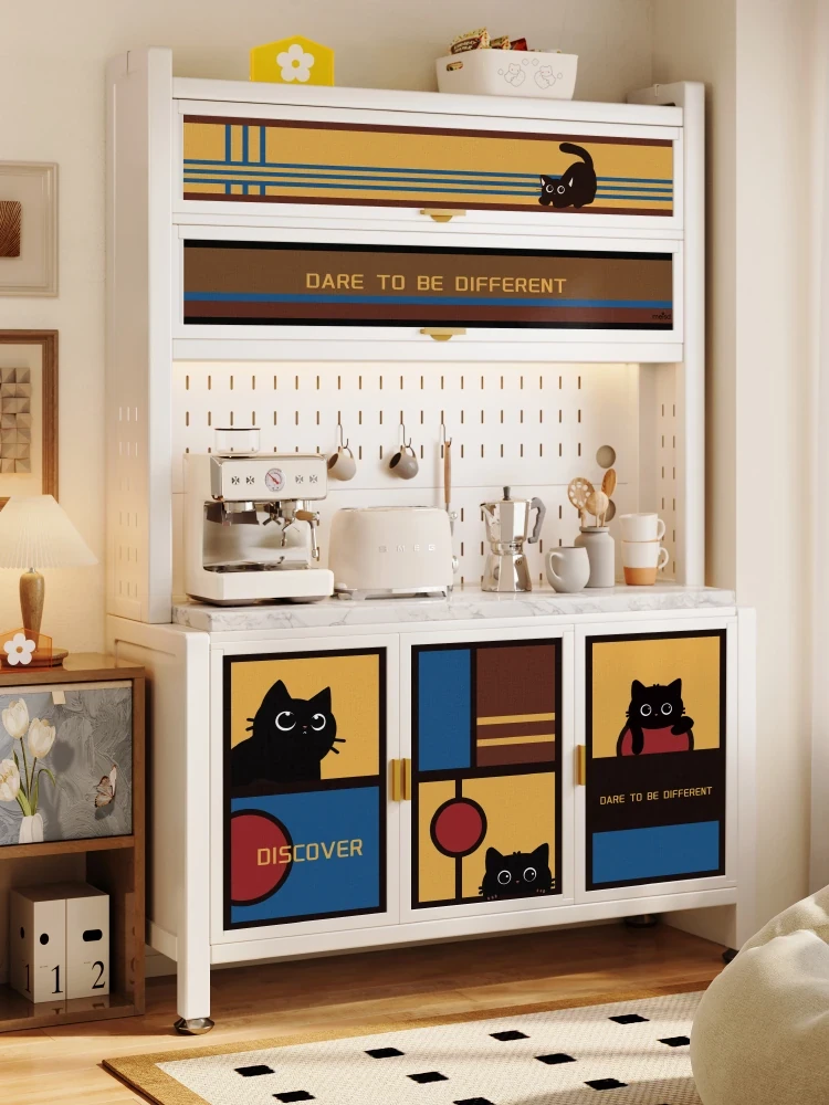 Meisida Cream-Style Stainless Steel Sideboard - Wall-Mounted Storage Cabinet for Living Room, Durable Carbon Steel with Elegant Ironwork, Perfect for Home Use