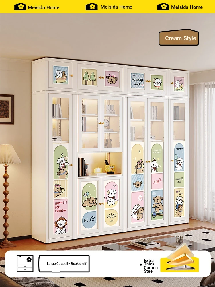 Meisida Cartoon Dopamine Metal Bookshelf - Formaldehyde-Free, Stylish Iron Storage Cabinet for Home Living Room, Wall-Mounted Steel Organizer