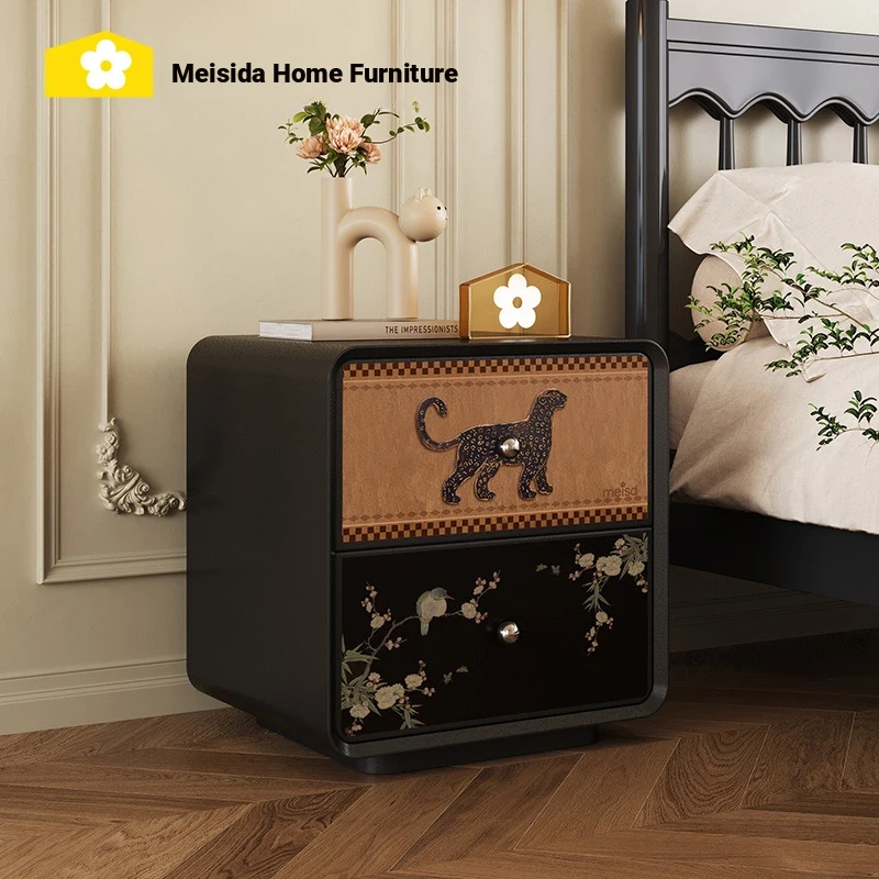 Mersida Vintage French-Style Nightstand - Elegant Black Storage Cabinet for Home Bedroom, Creative Luxury Design, Perfect for Organizing Your Essentials
