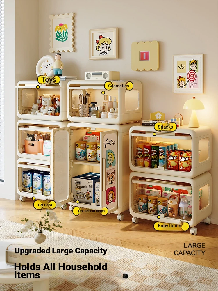 Meisida Multi-Functional Storage Cabinet - Stylish Dopamine Chest for Living Room, Large Capacity Snack and Toy Organizer with Wheels, Perfect for Clutter-Free Spaces!