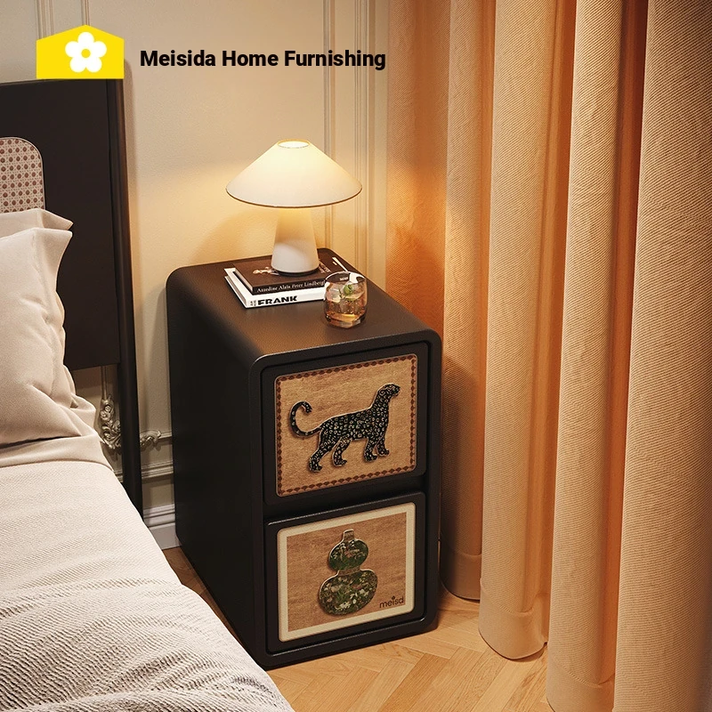 Meisida Vintage Narrow Mini Nightstand - Creative Black Retro Bedside Table for Home, Ideal for Small Spaces and Bedrooms, Stylish and Functional Design