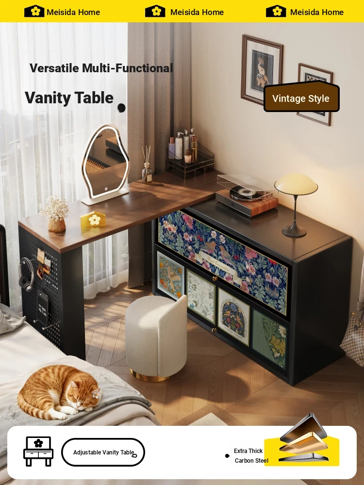 Meisida Vintage Makeup Vanity Set - Compact Carbon Steel Corner Dresser for Bedroom, Stylish Iron Makeup Table & Storage Cabinet