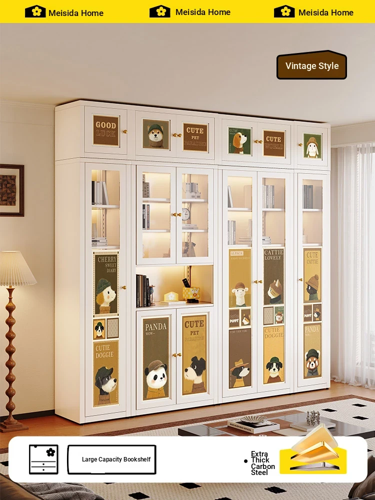 Meisida French Cartoon Arched Bookshelf - Dustproof Wall-Mounted Storage Cabinet, Vintage Steel Book Rack, Free-Standing Design for Stylish Home Organization