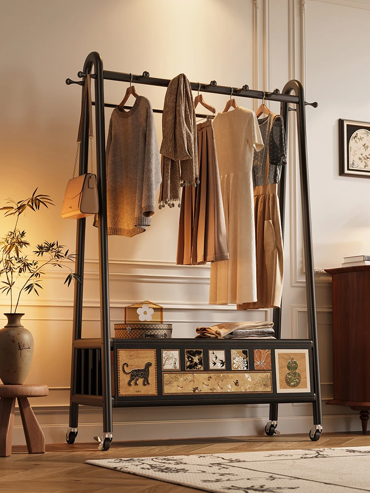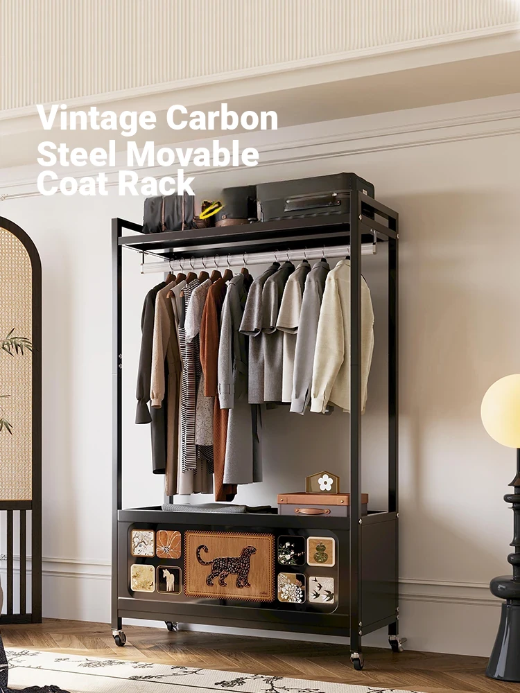 Meisida Vintage Leather Coat Rack - Multifunctional & Mobile Storage Solution for Bedroom - Stylish and Practical Clothes Hanger