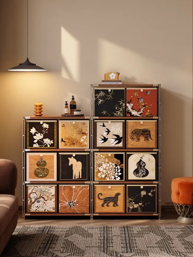 Meishida Vintage Carbon Steel Sideboard - Wall-Mounted Storage Cabinet for Living Room, Retro Home Iron and Leather Cabinet, Perfect for Organizing Your Space