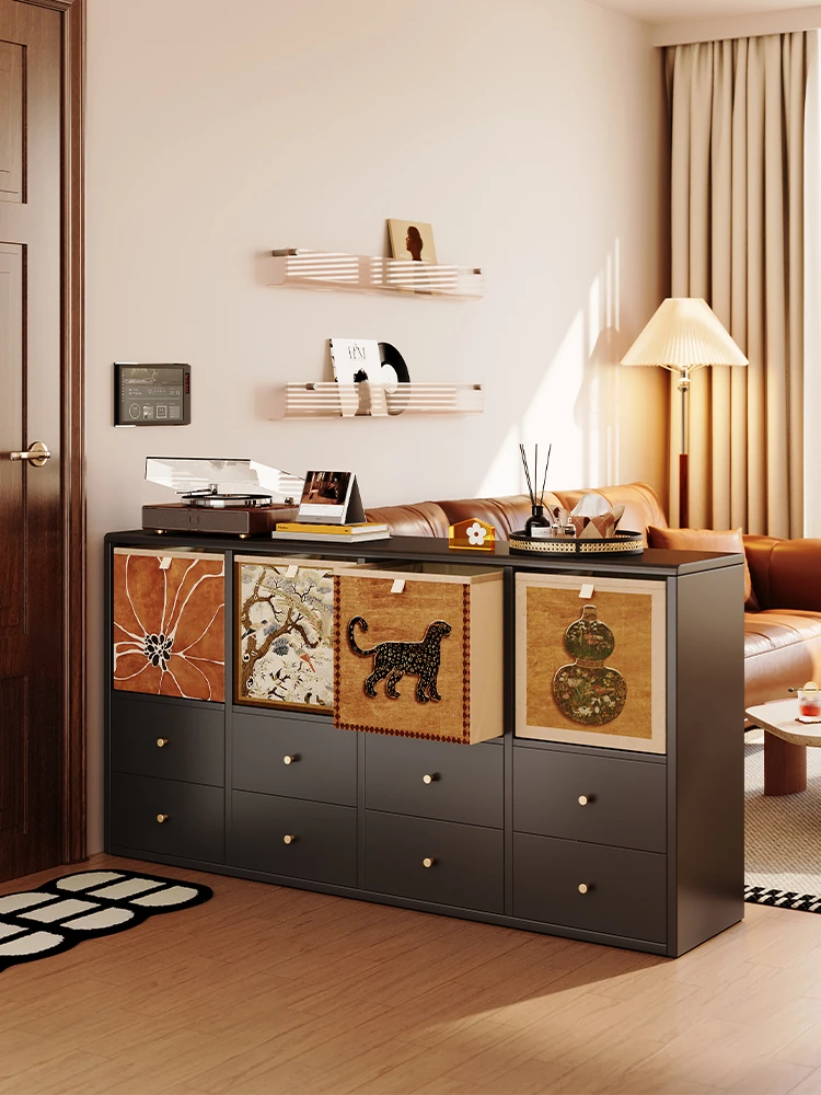 Meisida Vintage Style Entryway Cabinet - Kalek Grid Storage Unit, Living Room Partition with Drawers, Perfect for Organizing and Storing Essentials!