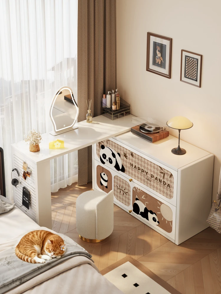 美世达のカーボンスチール製メイクアップデスク、クリーム風デザインのシンプルな伸縮式ドレッサー。ホワイトの化粧台とチェストが一体化したスタイリッシュなアイテムです。おしゃれで機能的な空間を演出!
