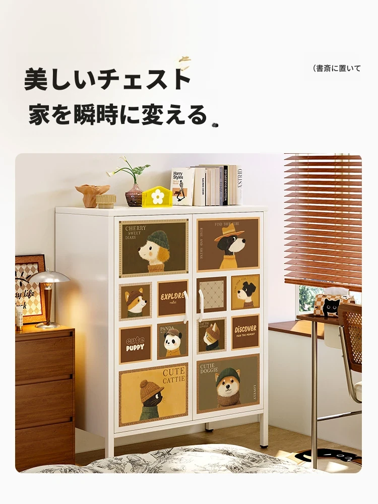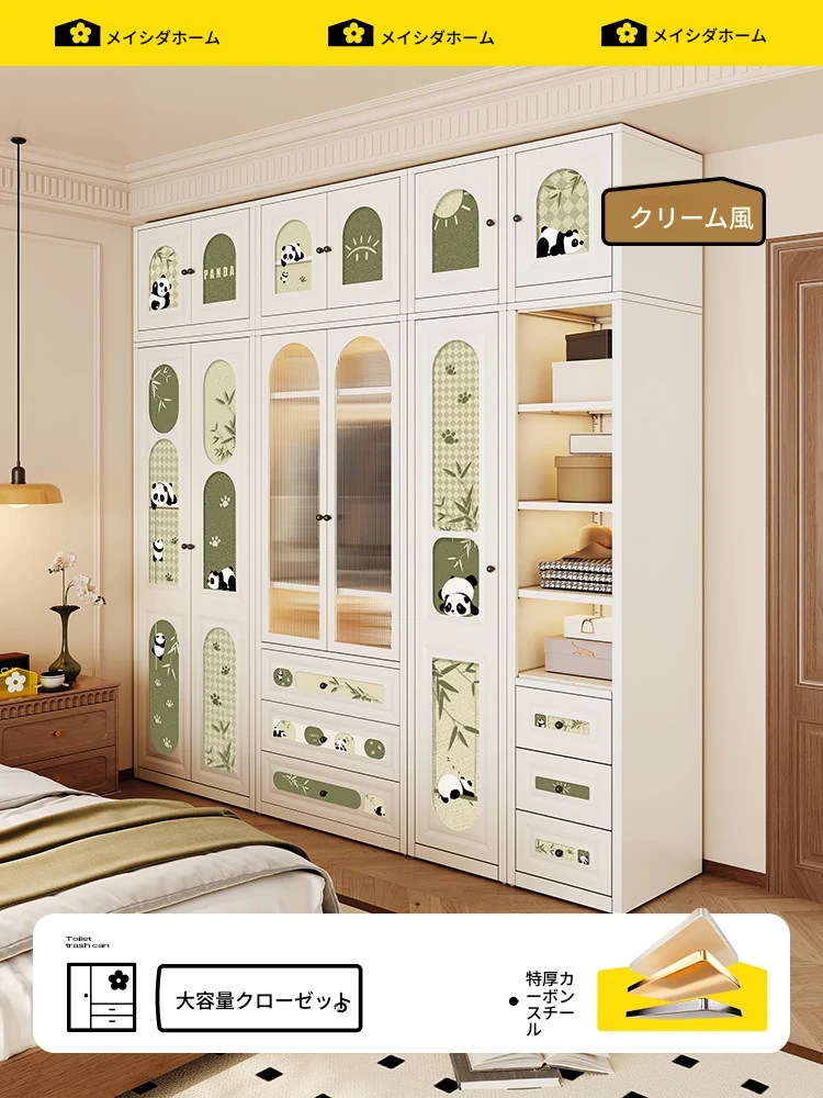 ミスターダカートンパンダ大衣装クローゼット、寝室用家庭用スチール製アイアン金属服収納キャビネット、新作登場!可愛いデザインでお部屋をおしゃれに彩り、しっかり収納できます!