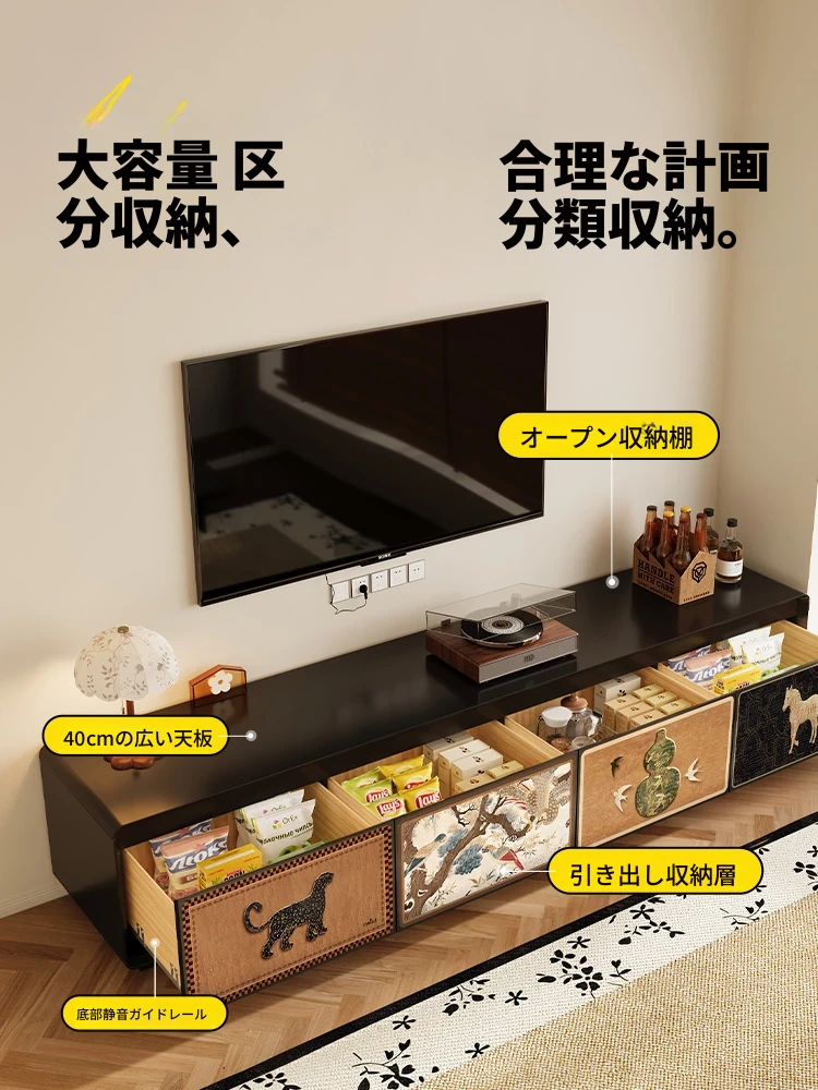美世达のアンティークスタイルのテレビキャビネット - 2025年新作!小型住宅に最適な収納力抜群のフロアタイプ一体型キャビネット。おしゃれで機能的なリビングを演出します!