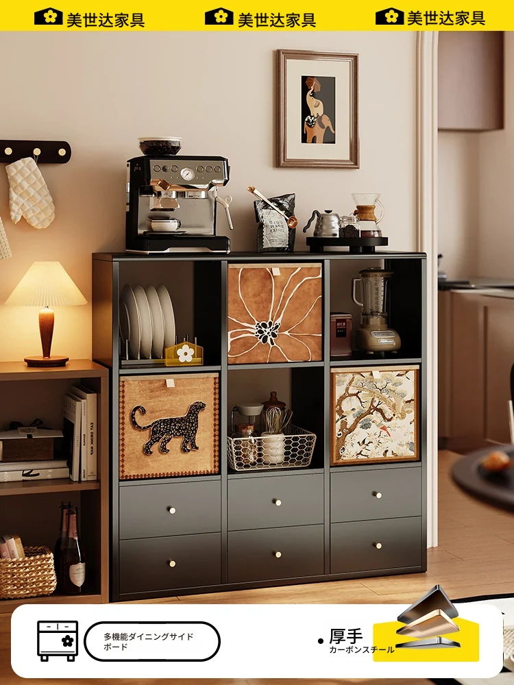 美世达のアンティーク風ダイニングサイドキャビネット - 背面設置可能な収納力抜群のカラフルなキッチンキャビネット兼用のサイドボード。おしゃれで機能的な空間を演出!