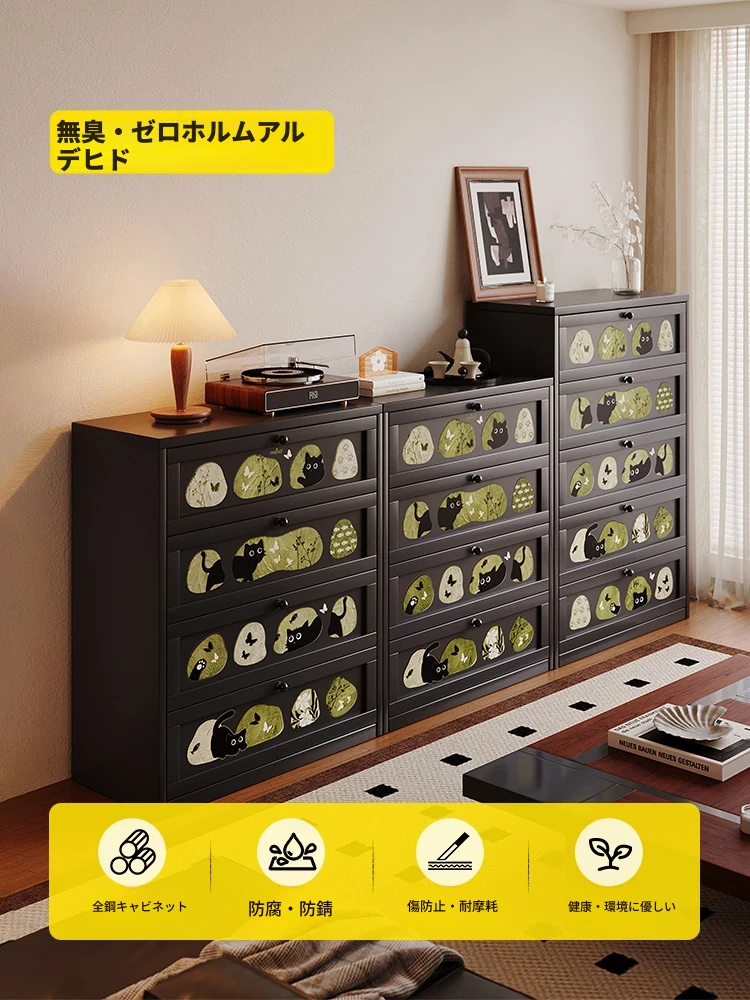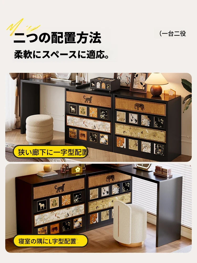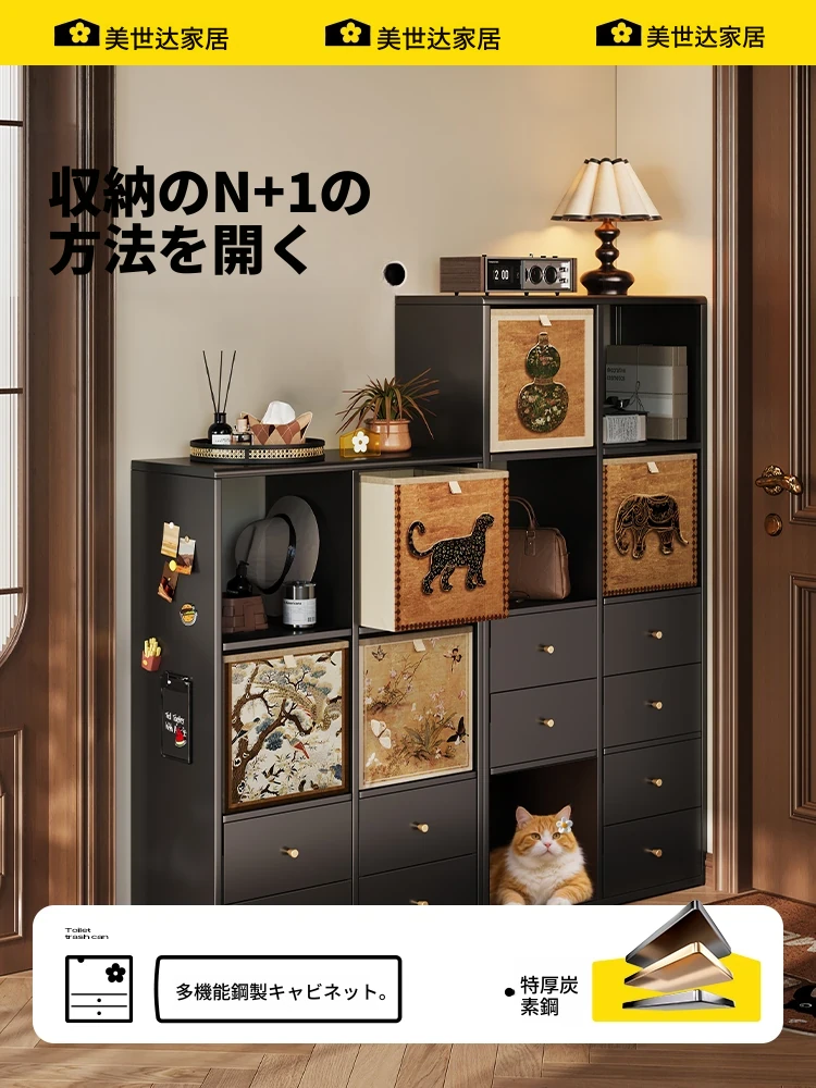 美世达のアンティーク風玄関収納キャビネット - 自由に組み合わせ可能なカラケックデザイン、引き出し付きの実用的な棚で、スタイリッシュにお部屋を整理整頓!