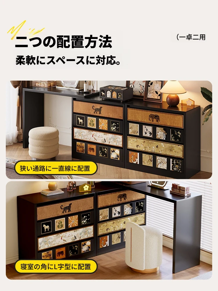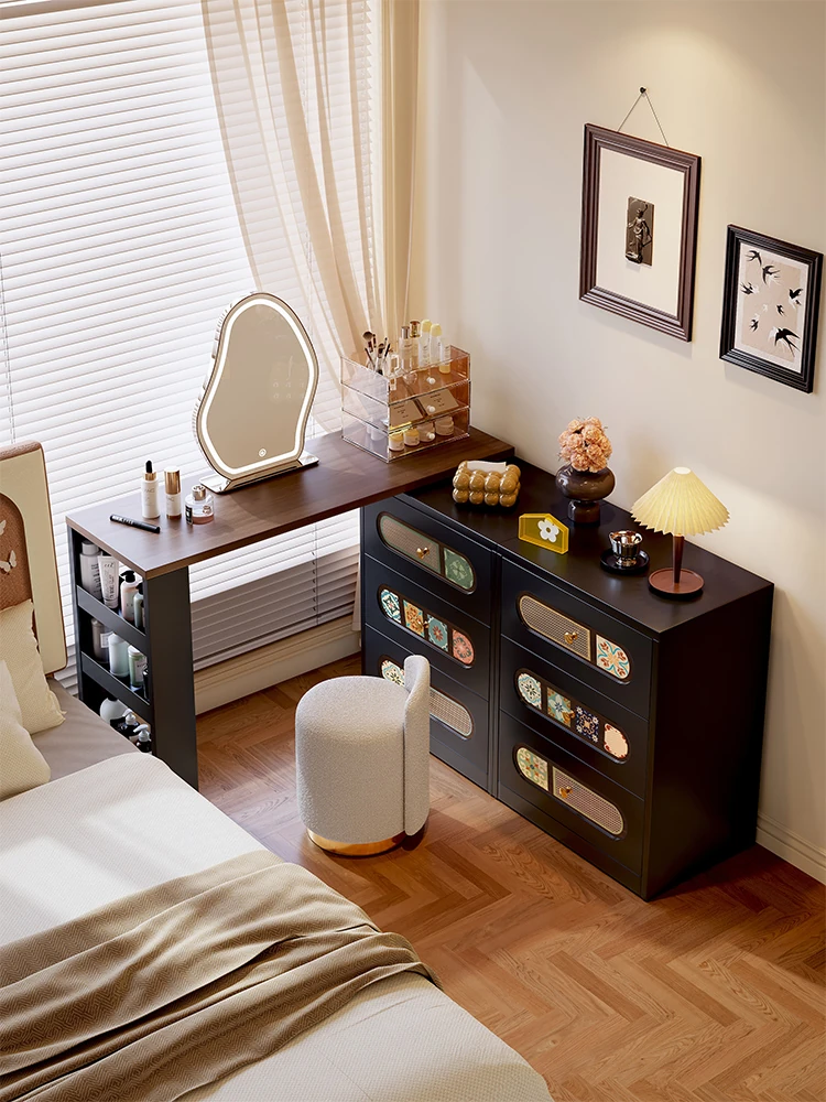 美世达のベッドサイドキャビネット一体型ドレッサー収納主寝室用化粧台、中古小型住宅にぴったりなコーナーデスク!おしゃれで機能的、あなたの寝室を美しく演出します。