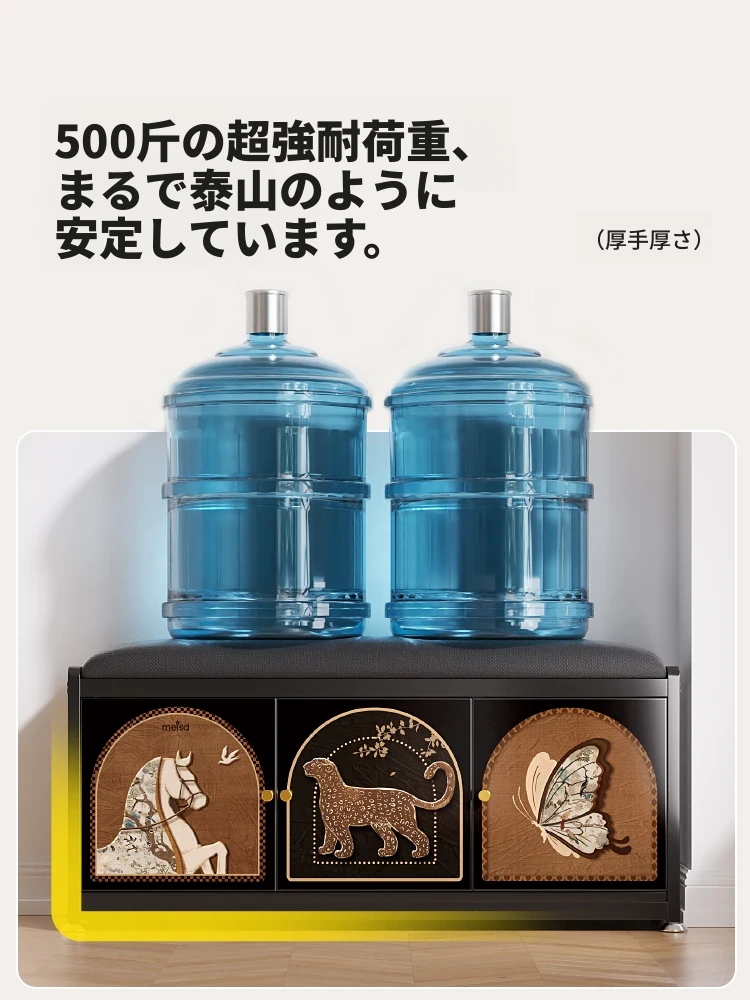 美世达の玄関用スチール製シューズベンチ - 中古風デザイン、座れる収納キャビネットで軽やかなラグジュアリー感を演出!入るたびに心地よい空間を提供します。